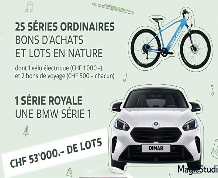 Aux séries 5, 10, 20 et 25, le carton aura une valeur de CHF 500.- La série 15 sera un VTT électrique d’une valeur de CHF1’000.-